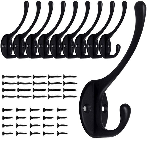 - Package includes 10 Pack double prong coat hooks and 40 screws of supporting screws, match each other well. Don’t worry that the screws are too short to bear the weight