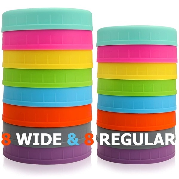 • ◆16 COLORED REGULAR & WIDE MOUTH LIDS – Regular Mouth Lids Fit 2.75 in (70 mm) Outer Diameter Mouth Jars, Wide Mouth Lids Fit 3.38 in (86 mm) Outer Diameter Mouth Jars. [8 colors] Tiffany Blue, Pink, Purple, Grey, Blue, Green, Orange, Yellow, add great fun and colors to family. 8 wide mouth lids + 8 regular mouth lids